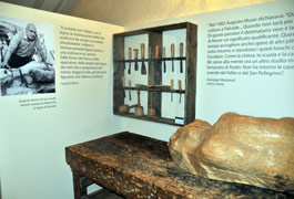 Ringraziamenti "non di circostanza" sono stati espressi al Consiglio regionale da Ornella Murer, figlia dell'artista e rappresentante dell'"Archivio Museo Murer" di Falcade che ha messo a disposizione le opere esposte. La rassegna espone 30 sculture e 25 tra disegni e acqueforti che tracciano l'intero percorso artistico dello scultore agordino iniziato nel suo paese natale, Falcade, immediatamente dopo la fine della seconda guerra mondiale che lo vide impegnato nella lotta partigiana con la Brigata "Fratelli Fenti" attiva nelle montagne bellunesi. Nel 1946, infatti, il giovanissimo Augusto Murer mettendo a frutto i suoi studi presso la scuola d'arte di Ortisei e una breve, ma intensa, collaborazione con Arturo Martini nel 1943, si fa conoscere con la via crucis della porta principale della chiesa parrocchiale. Un'opera lignea che traccia, nelle tematiche e nel materiale prescelto, quella che fu, in qualche modo, la principale linea guida della sua opera: grande attenzione alla sofferenza umana e una decisa predilezione per il legno, materiale per eccellenza dell'habitat montano e non a caso ricordato dal titolo stesso della rassegna. Il legno dunque, a cui seguirà negli anni della maturità il bronzo, per raccontare le vicende di chi lotta con le difficoltà dell'esistenza ma anche di chi la vita la crea: il motivo della maternità è, infatti, assieme alla pietas religiosa cristiana, un altro tema ricorrente. Ma i motivi ispiratori dell'opera di Augusto Murer si allargano ai miti più pagani dei boschi tramandati dalle antiche fantasie popolari, ai ritmi della danza fino a quelli dei saltimbanchi circensi.